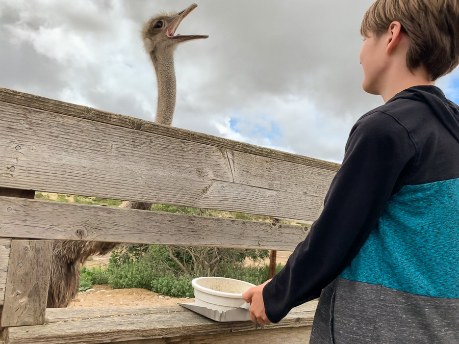 You could buy food to feed the ostriches and they gave you a bowl with a handle. The ostriches were pretty aggressive and tried to grab the bowl.