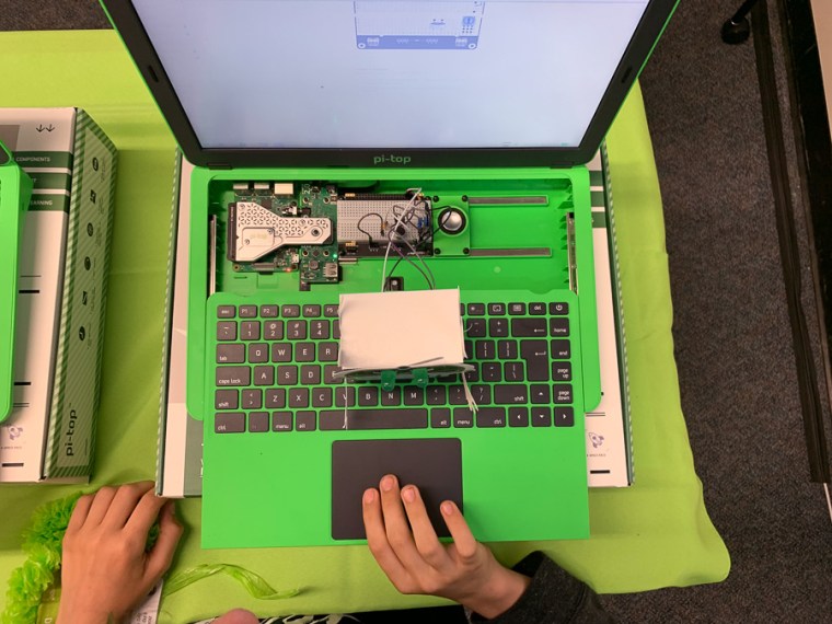 This week of camp he built his own laptop PiTop computer and learned how to code it. And he got to bring his new computer home.