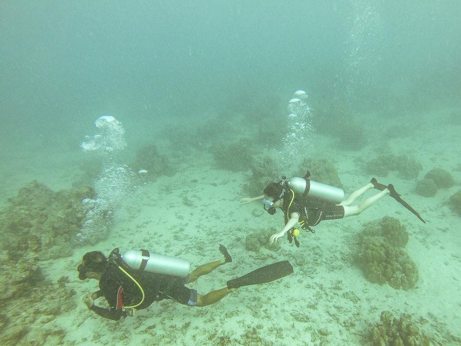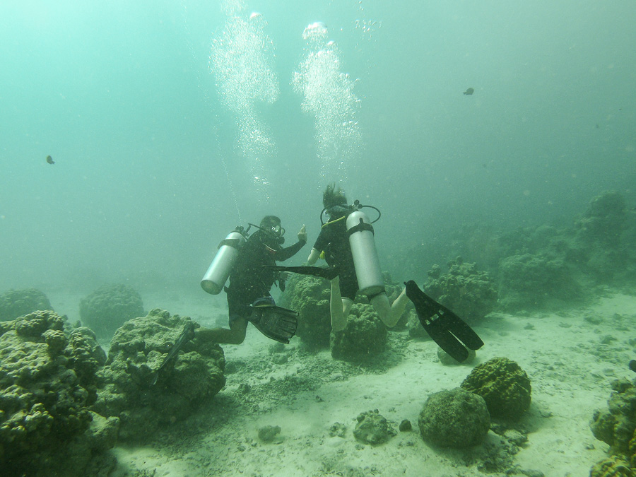 Saturday was a busy day for us. We decided to book a Discover Scuba dive with Quinn. We booked it early in the week in case we wanted to go again. Quinn with his instructor Phillipe.