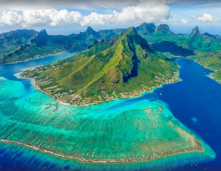 And here is an even higher view of the Hilton. There is a bay on either side of the Hilton and you can see the reef that circles the island. That reef keeps the current to a minimum so the water is super clear.