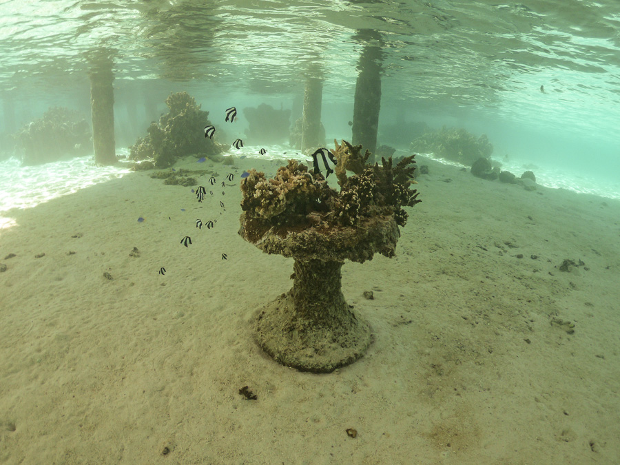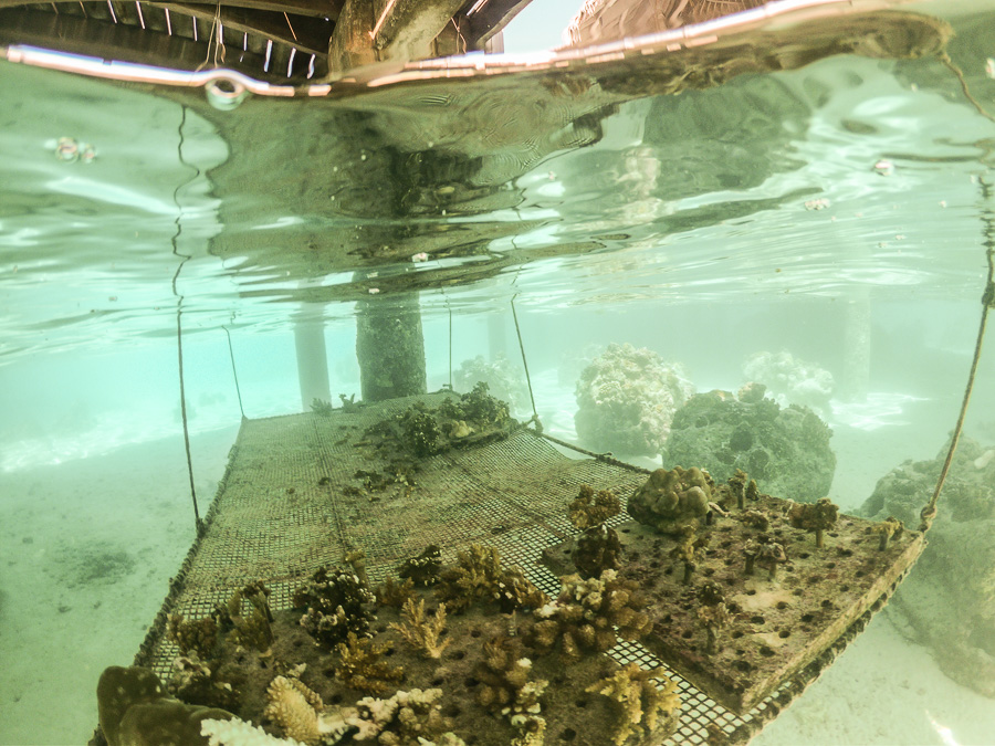A coral garden being planted under the crepe restaurant.