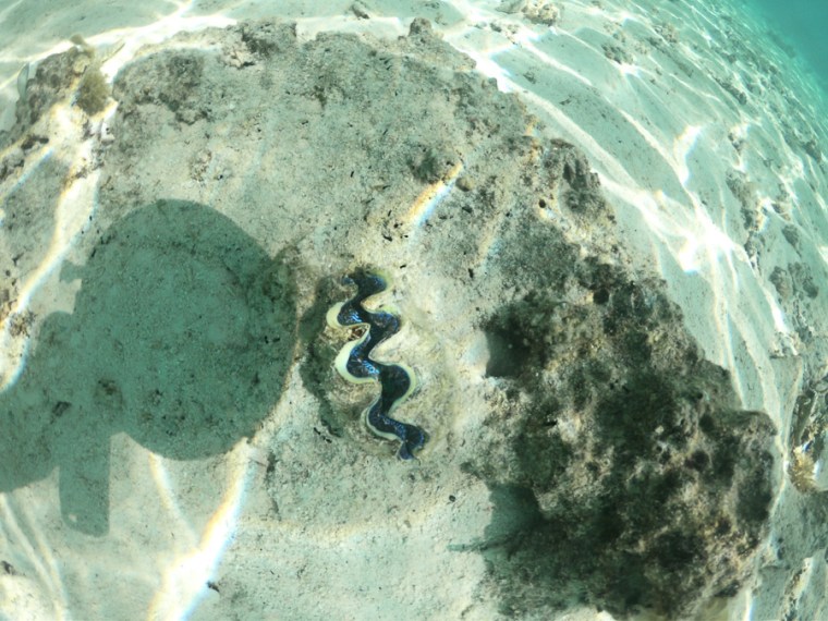 We saw lots of these maximus clam. They are a really bright colored clams until you get close and they close up.