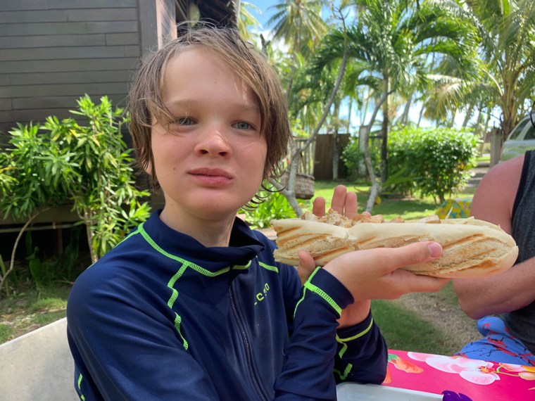 For lunch we walked across the street where a lady has a food truck in her yard. It was quite lovely and a nice change of pace. Quinn got the kids chicken sandwich and it was huge!