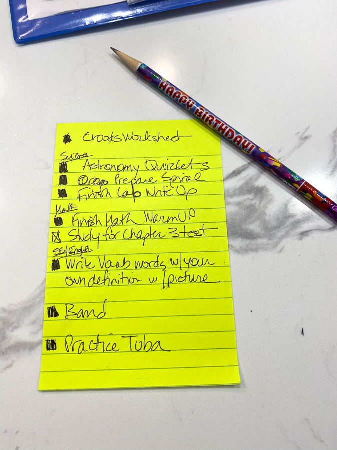 Most of Quinn\’s teachers post the homework on their webpage. So when he gets home from school we make a list of his to do\’s. This list was particularly long but he knocked it out with no problem.