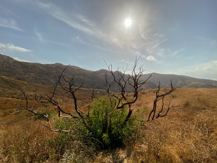 Now that Quinn is back in Odyssey for a couple hours on Sunday, Don and I are back to our Sunday hikes. I love this time outdoors together. We went on a hike where the fire roared toward us last year. You can still see remnants of the charred plants.