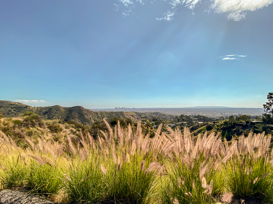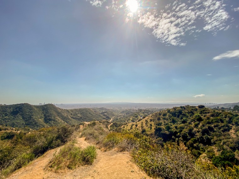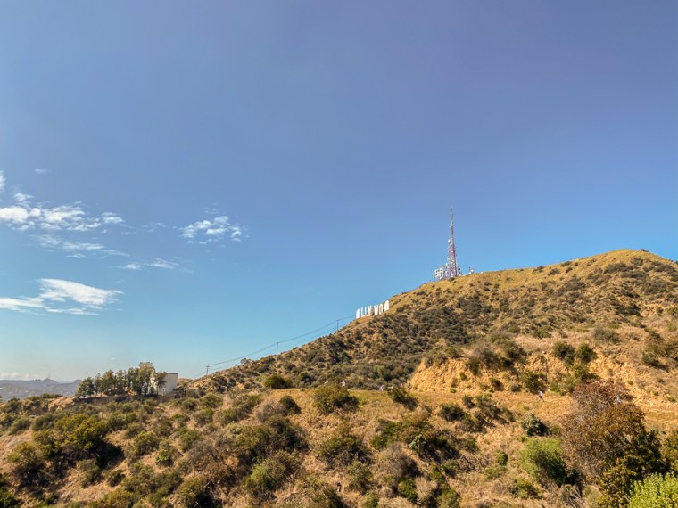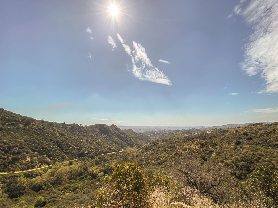 Then it was on to the Hollywood sign hike. The first mile of the hike is brutal with a 1,000 ft elevation gain. Ugh! But so worth it once you get to the top. You can see the trail to the left in this picture.