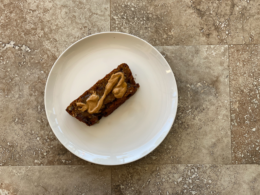 I\’m working on a gluten free week for Quinn to see if it clears up some patches of eczema. Gluten is his favorite food group so I gotta make it tasty. Today I made Pumpkin Bread smeared with cashew butter and drizzled with honey. It is so very good and is a great light lunch or snack.