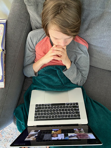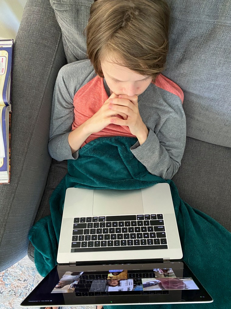 Doing a virtual meeting with his Odyssey team. They still meet every Monday during lunch.