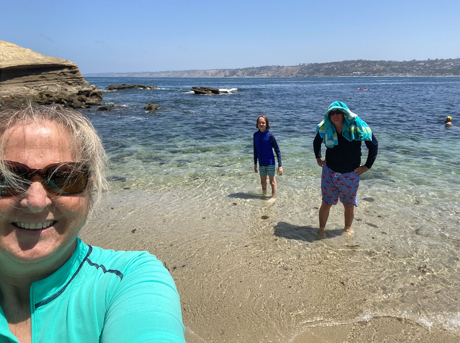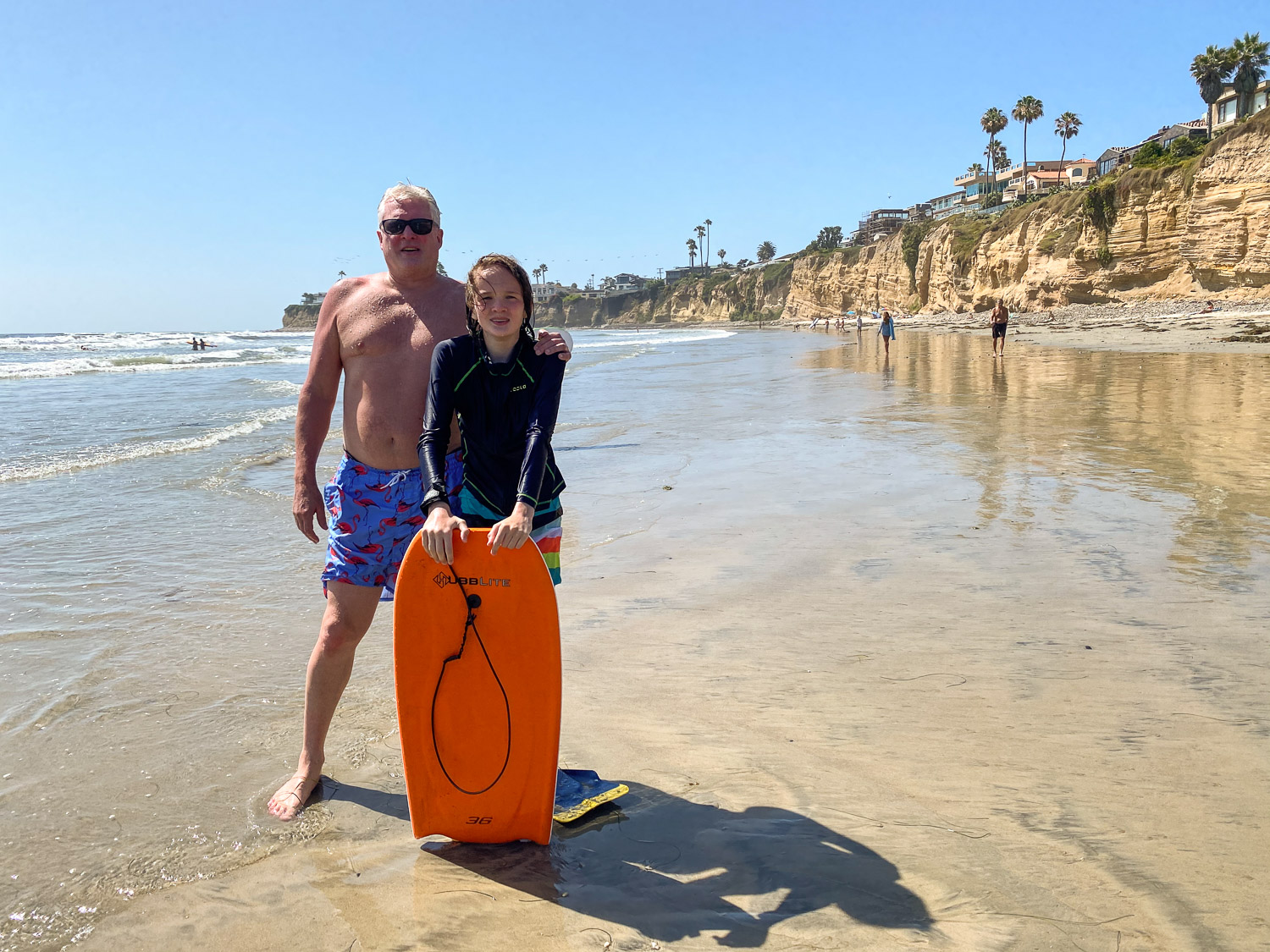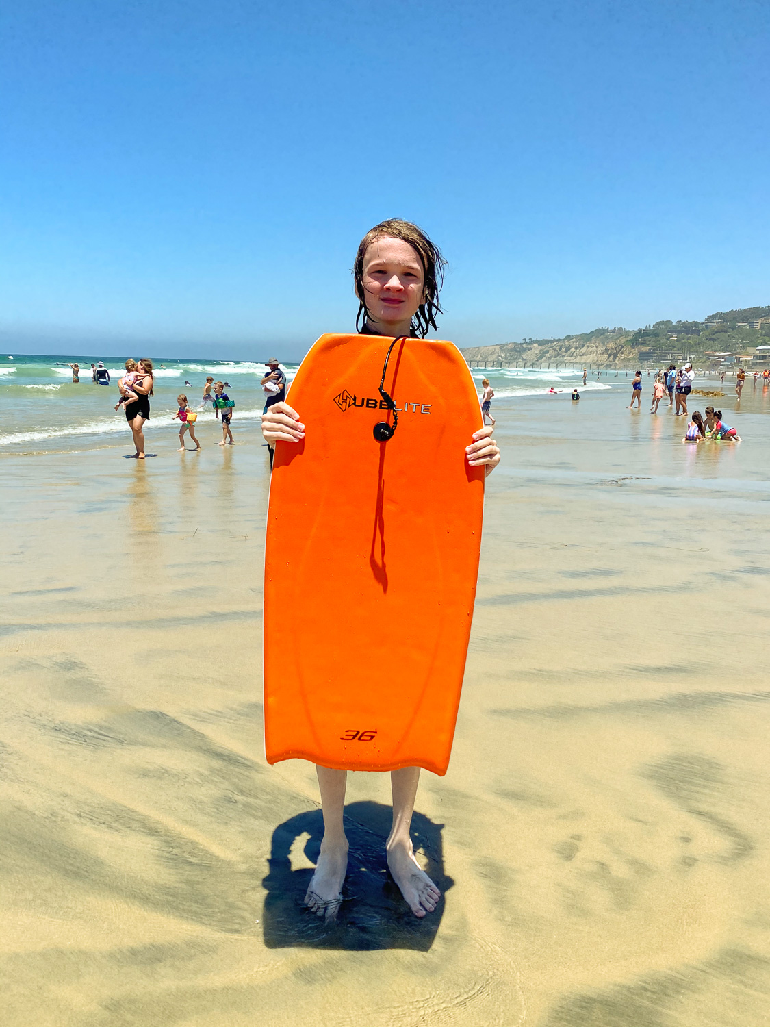I had texted with the condo owner and she gave us a couple of recommendations for good places to boogie board and La Jolla shores was at the top of the list. We were surprised at how crowded the beach was but we still had plenty of room to social distance.