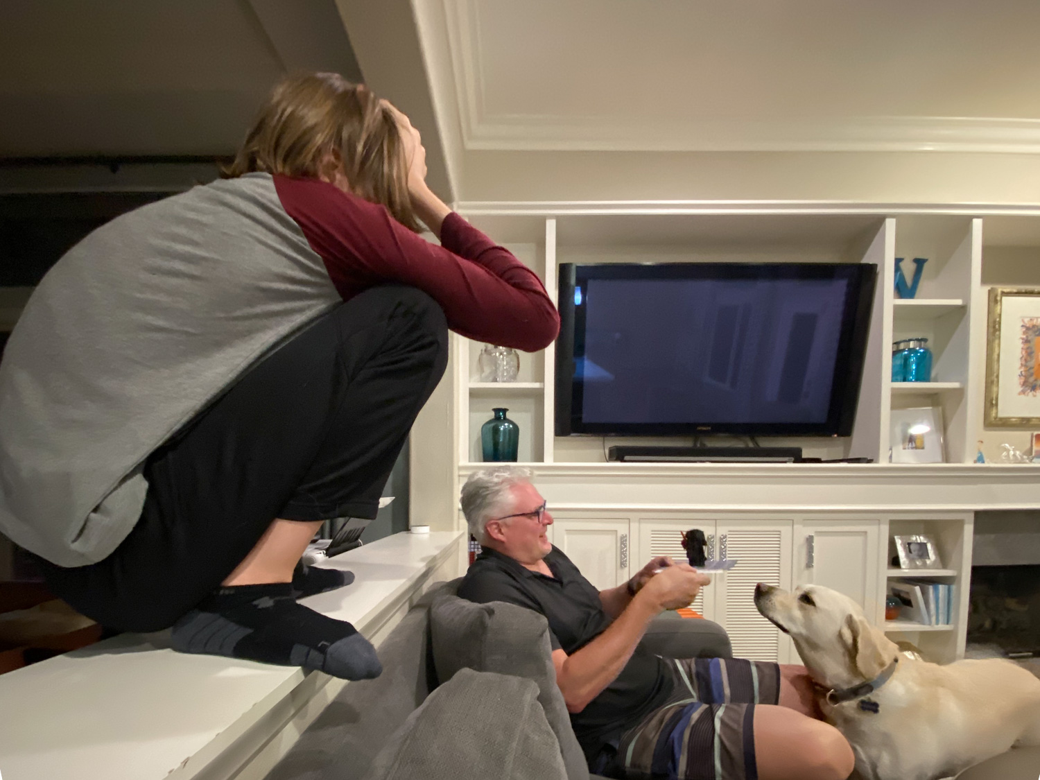 Then home for birthday cards, gifts, and dinner. Quinn got Don a pop-up \”You are my father\” Star Wars card. Sonic wanted to eat it 🙂