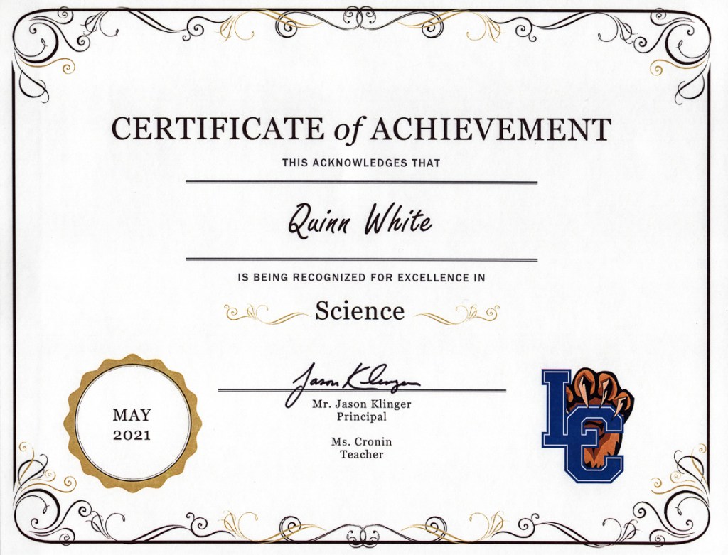 Quinn earned a special award in Science for his outstanding performance. His science teacher this year is pretty amazing. She communicates so well with the kids and parents and Quinn loves her class. They are currently learning about genetics.