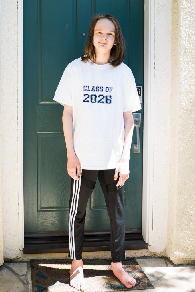 Class of 2026! Um, it almost fits him in the 7th grade. Should be interesting in the 12th grade.