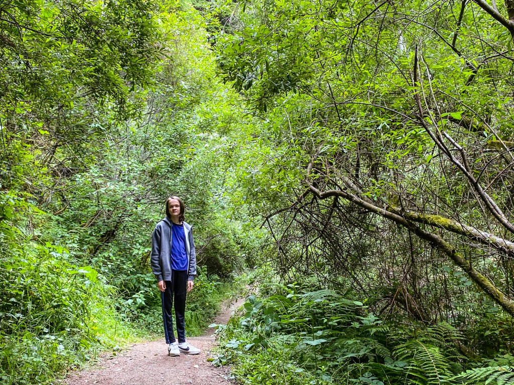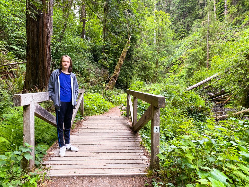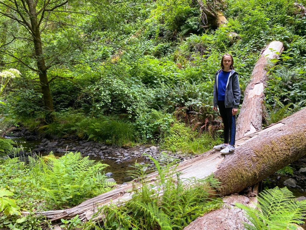 On Thursday, Quinn and I walked along the Fern Canyon Trail and it was so green and lush. It was a nice flat trail that ran along a little river. Southern California is so dry, hot and brown right now so this was so inviting for us. We loved this trail.