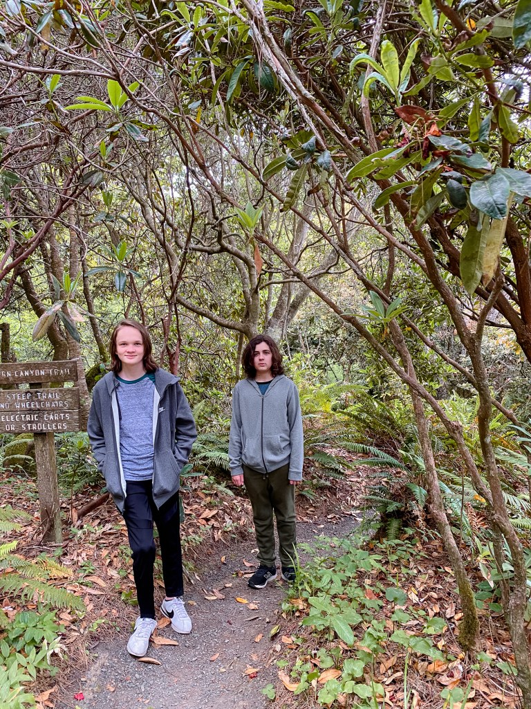 On Tuesday we went to the Botanical Gardens . These two teens don’t love their photos taken.