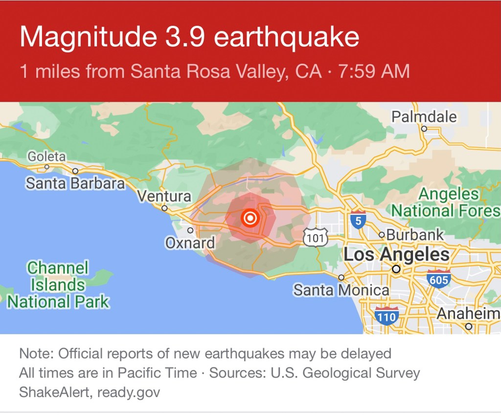 We got a rock and roll start to the week. It wasn’t a very big one but it was only 3 miles from us. The house shook for a good 10-15 seconds. Wow! My biggest shake yet.