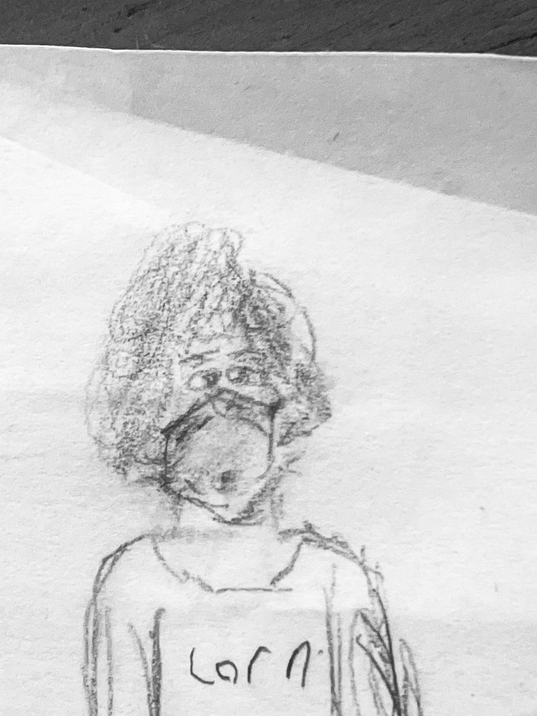 Quinn did this pencil sketch on a post it note of his buddy Elias. His dad sent it to me. It does such a great job of capturing him. They were talking about Native Americans in Social Studies and the corn grinder they used. Somehow hilarious to 13 year old boys.