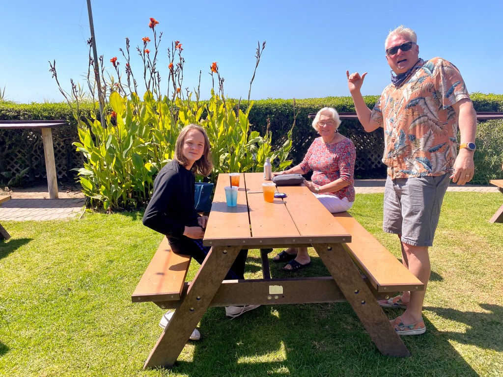 On Sunday we drove up to Santa Barbara for the first time in a year or so. There’s an ocean side restaurant where we like to stop for lunch. You can’t tell but the ocean is on the other side of those hedges.