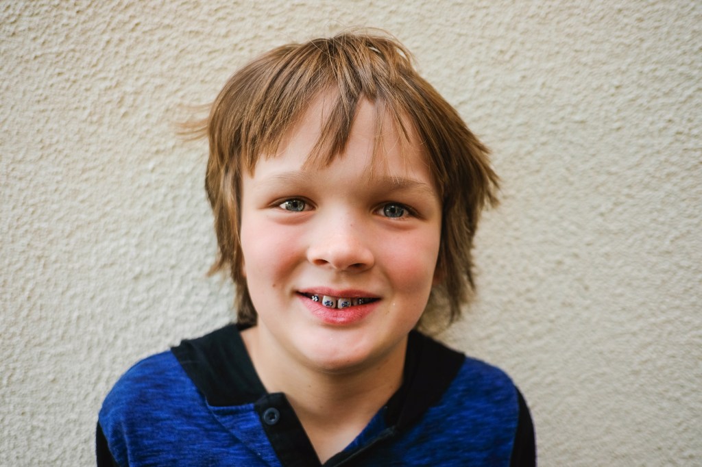 He’s so happy to have them out. He has permanent retainers that are attached in the back on both upper and bottom teeth and he will wear a plastic retainer at night. And he is still working on the open mouth smile after years of doing the closed lip smile.