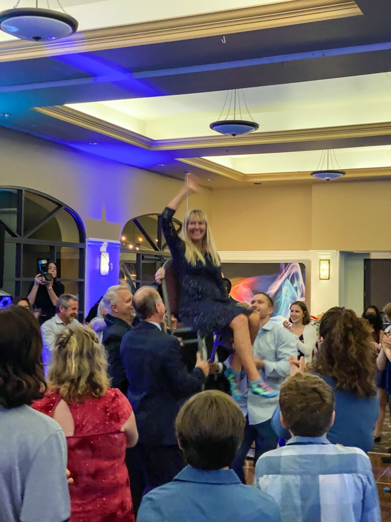 The Hora – so much fun and an important part of the bar mitzvah. You might recognize Coach Juli from Odyssey.
