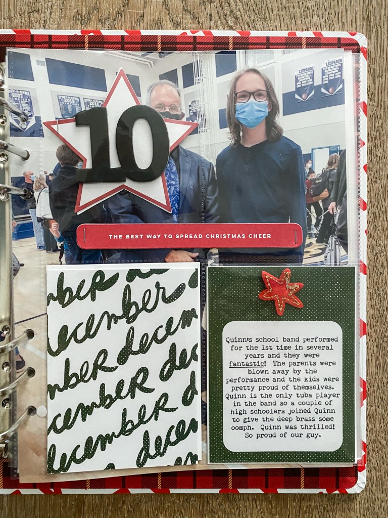 Bonus Content: here is the first minute of the band playing the theme to The Avengers. It’s starts with some really good deep brass. Quinn is hidden behind his tuba but he is in a blue shirt seated in front of the kid with the puffy hair and blue mask in the very back right.
