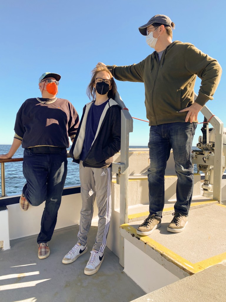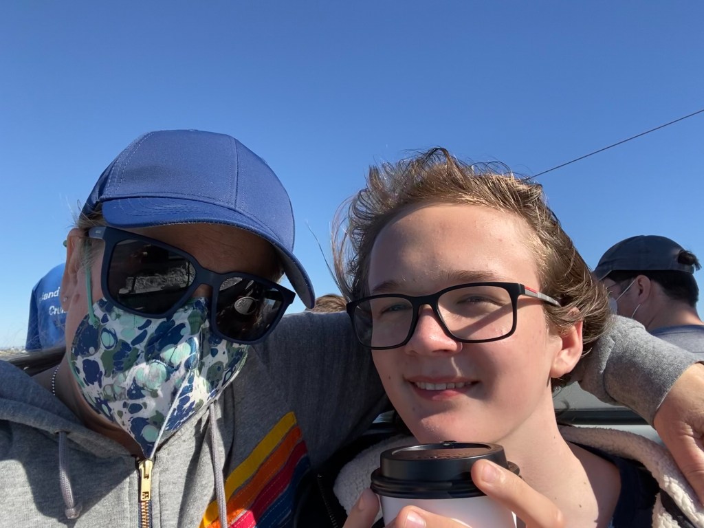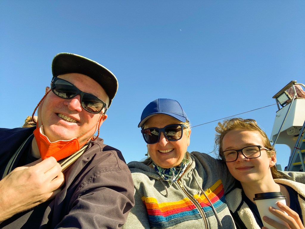 The boys hanging out on the back of the boat. Don can be prone to seasickness so staying outside near the back of the boat is the best place for him and he had no problems.