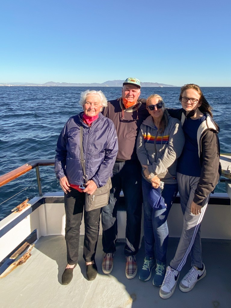 We had a fun Sunday on the water near the Channel Islands looking for whales. We were lucky that it was a beautiful day without much wind. We went with the Conraths and took the grandmas, Barb and Margaret.