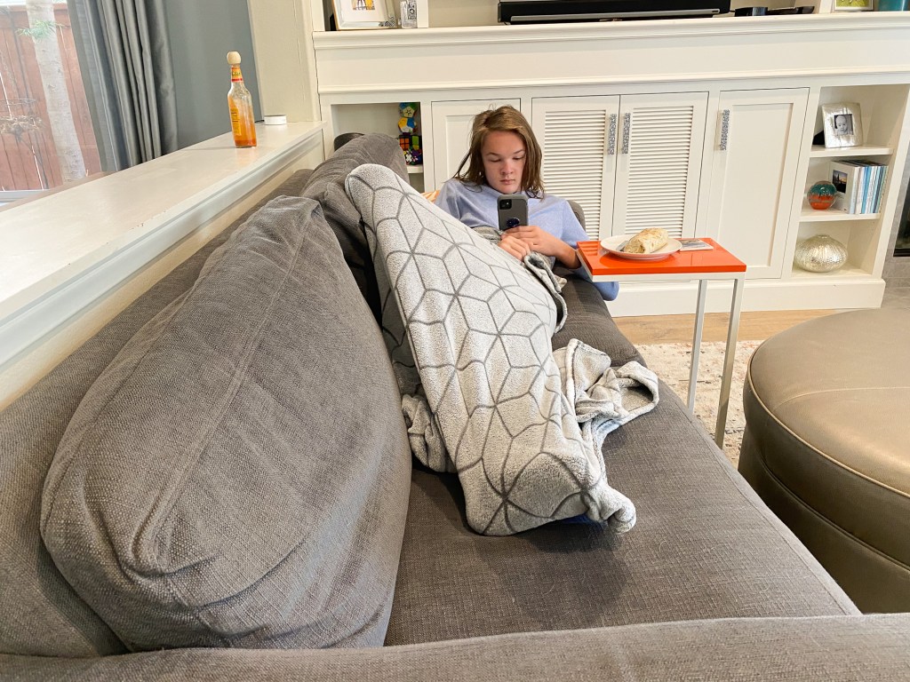 L-R, top to bottom. Eating weird candy at the mall with Elias, Quinn’s fave breakfast burrito, recognition from his teacher, beating Mae at Scrabble on his Tuesday after school visit, heading in to Thousand Oaks High School for Tuba, sitting with Sonic on Sonics favorite couch.