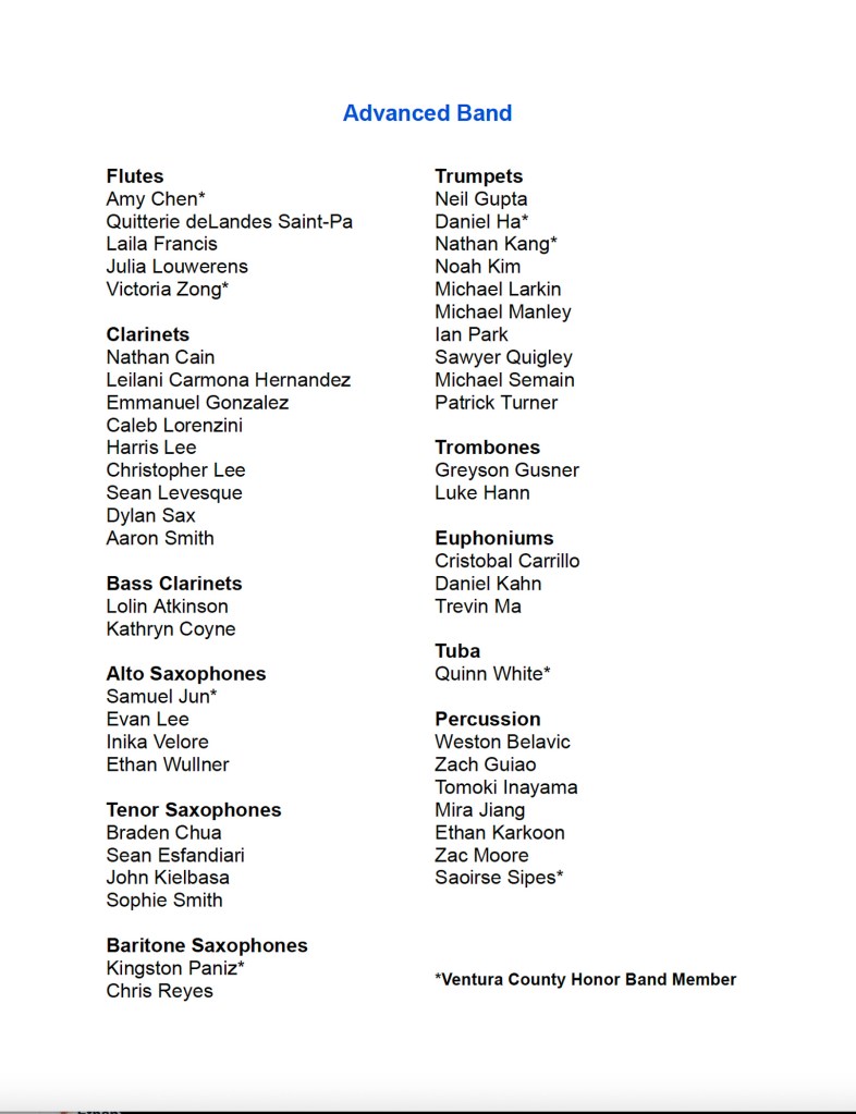 The program for the concert. You can see on the 3rd page the kids in the honor band were recognized.