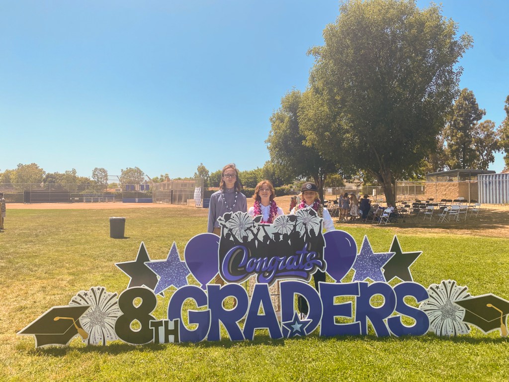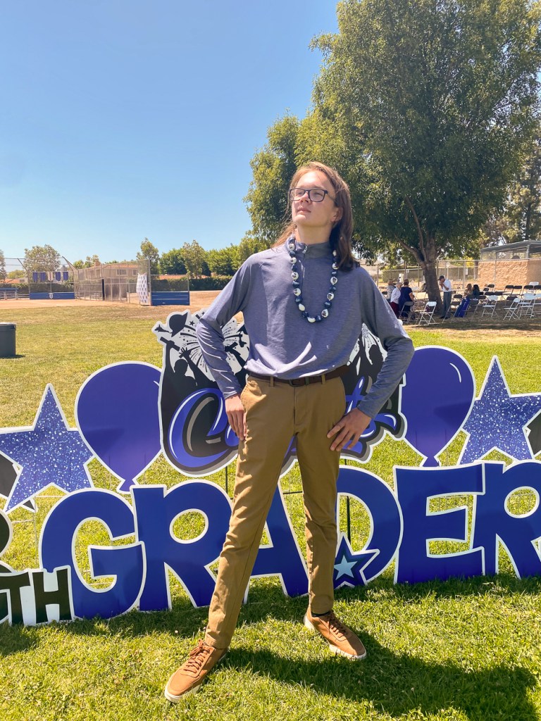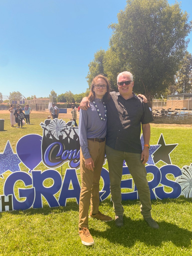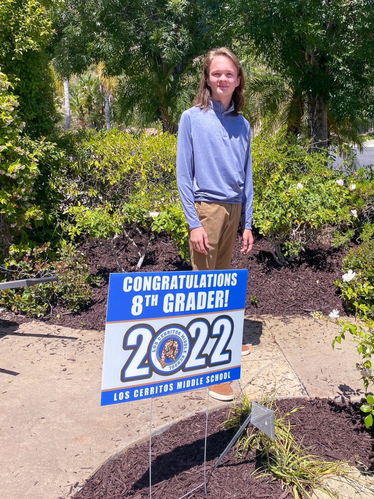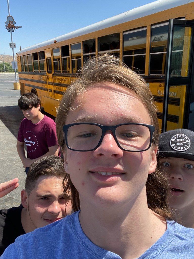 Although Quinn missed being on site for school for half of 6th grade and all of 7th grade, he’s had a pretty great 8th grade year with alot of activities, like the 8th grade trip to Magic Mountain (amusement park) on a school day!