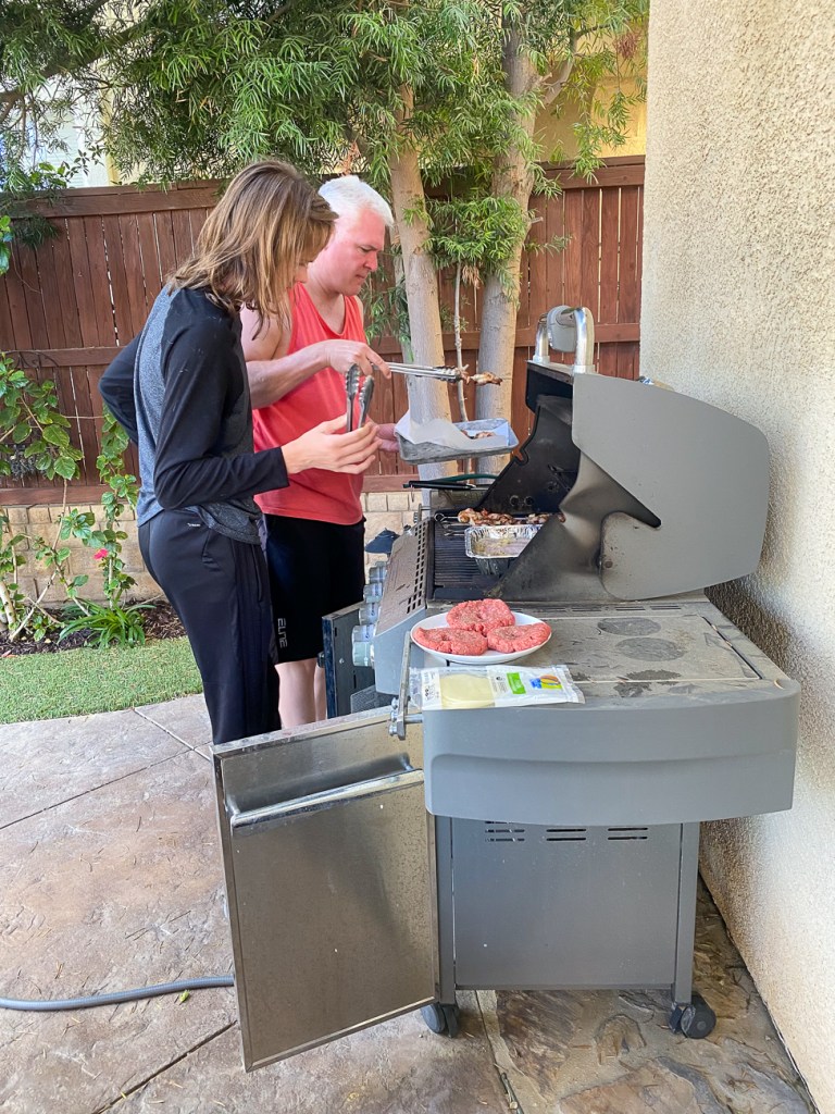 Don was explaining to Quinn how the guy does the grilling, no matter the cooking skill level of the spouse. Quinn got a lesson on grilling shrimp, bratwurst, and burgers.