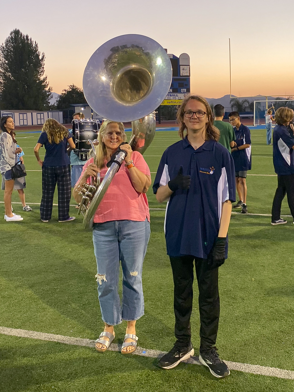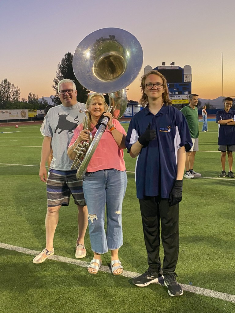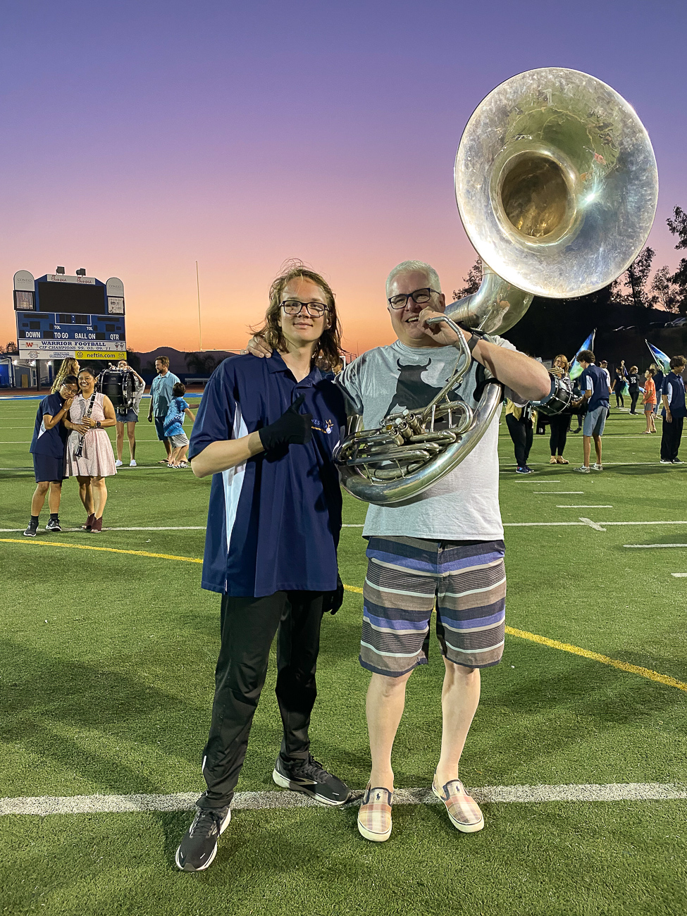 Here’s a 1 minute sample of the band playing and the color guard performing. Quinn is tuba on the right. One great thing about the tuba is that you can always spot it!