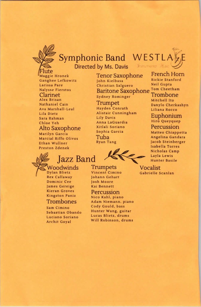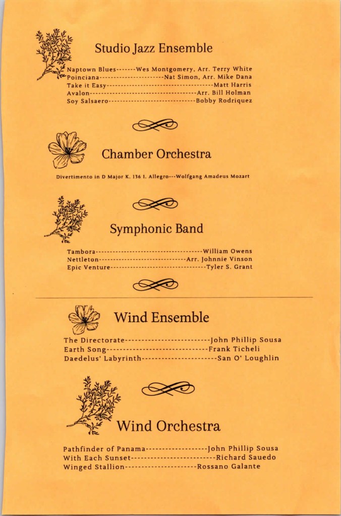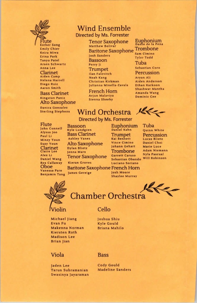 Here’s the program for the evening. Quinn is in their top band, Wind Orchestra, and is only one of a couple of freshman in that band.