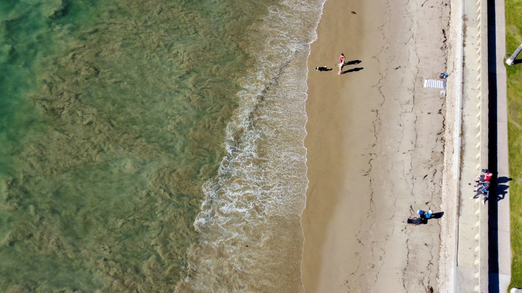 We were looking for dolphins and sea life. We didn’t find any, but look at how gorgeous the water is from above, so blue and clear (despite all the seeweed).