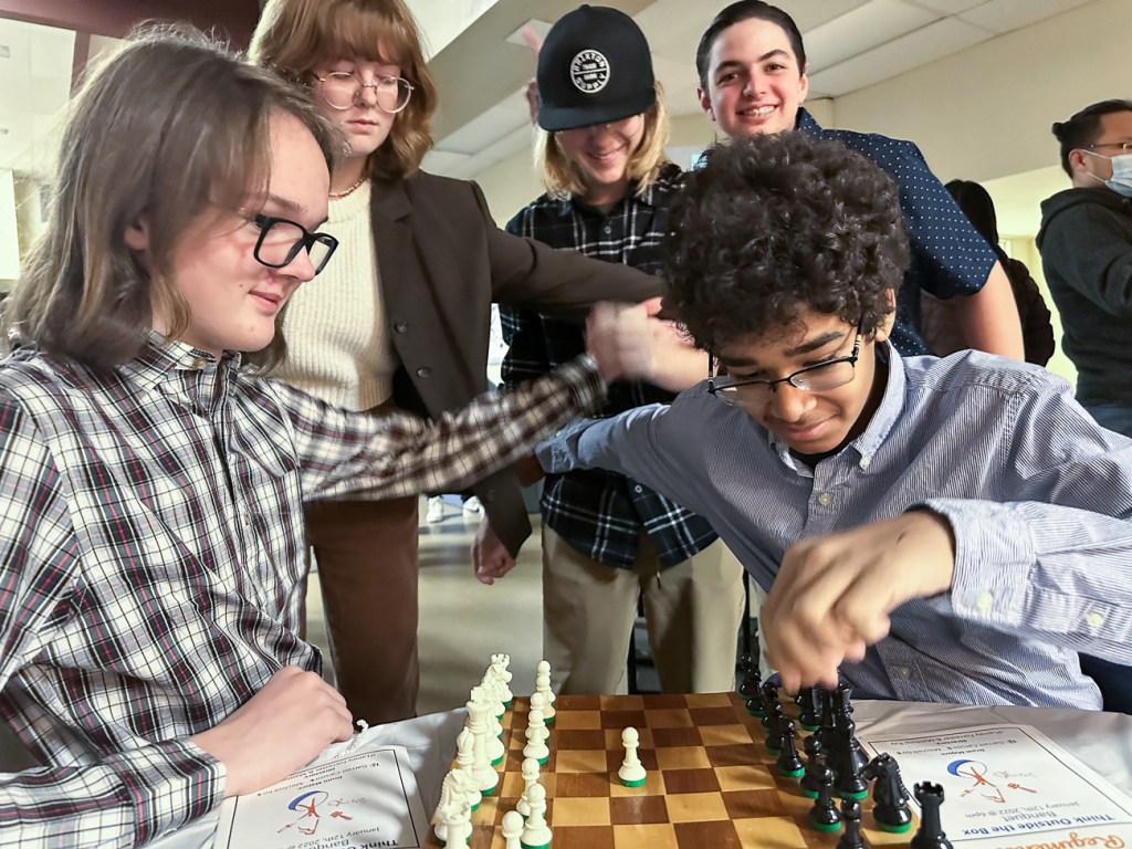 The Marching Band had their awards banquet at the school and for some reason Quinn took his chess board. Now I know why. As you can see, they were all a bit handsy.