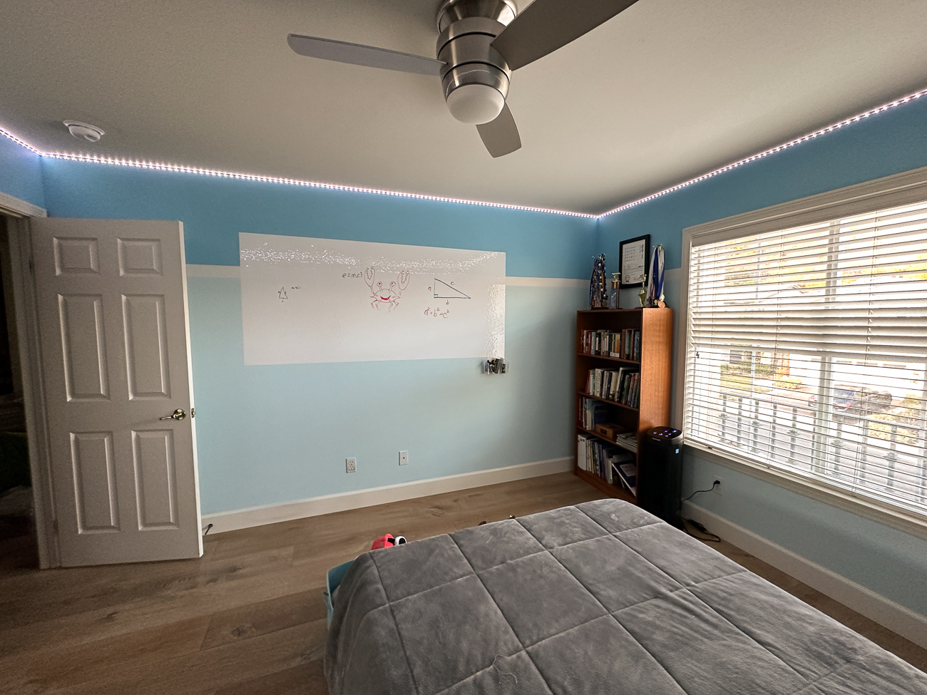 For Christmas, Quinn wanted a white board in his room so we decided to updated it. We repainted it in colors he chose, changed out some furniture and added the white board for all the math. Now it just needs a little wall art.