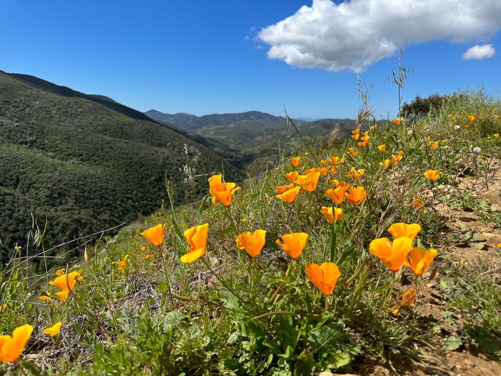 So nice to see the California poppies blooming. They covered the sides of the trails and hillsides.