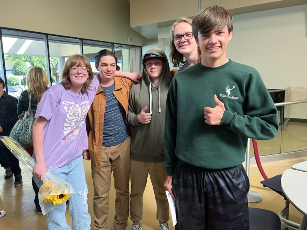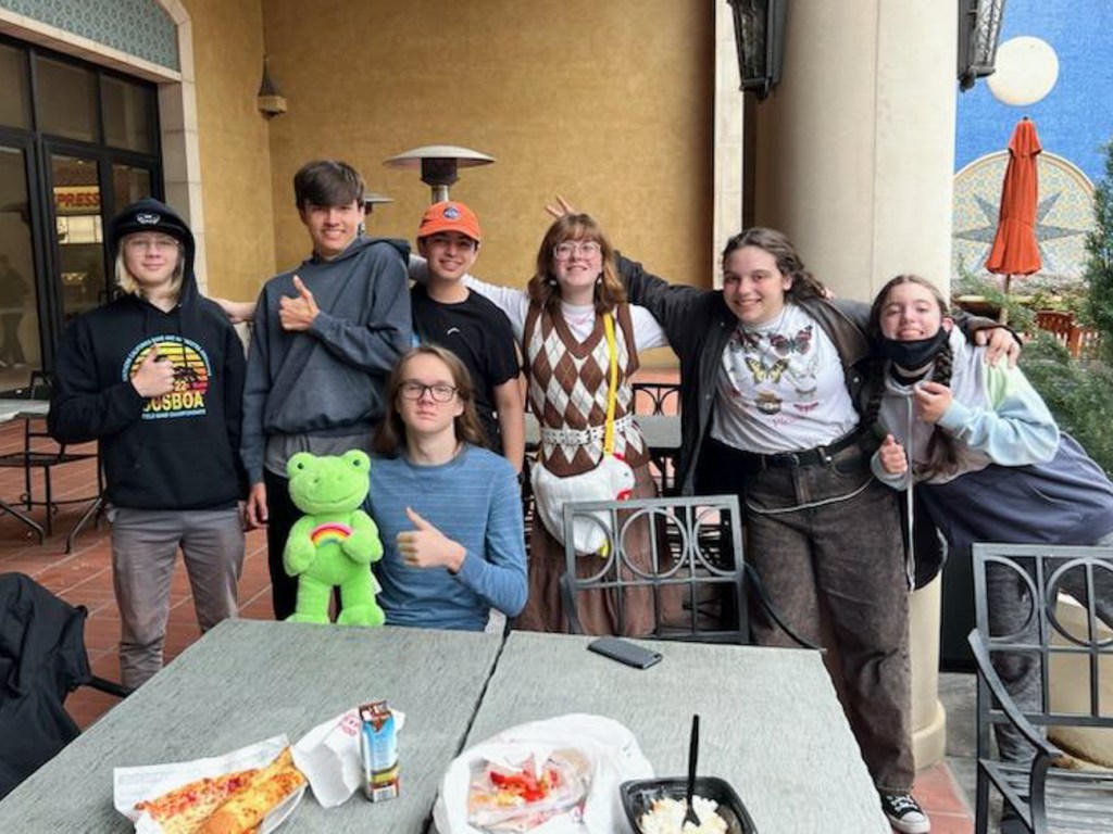 Quinn and his friends. First pic was from the “Mean Girls” performance at the high school — the guys went to see Lex perform. Second pic is a birthday pizza and movie party. The kids shuffle that stuffed animal around from house to house — it originated from a visit to Build-a-Bear several years ago.
