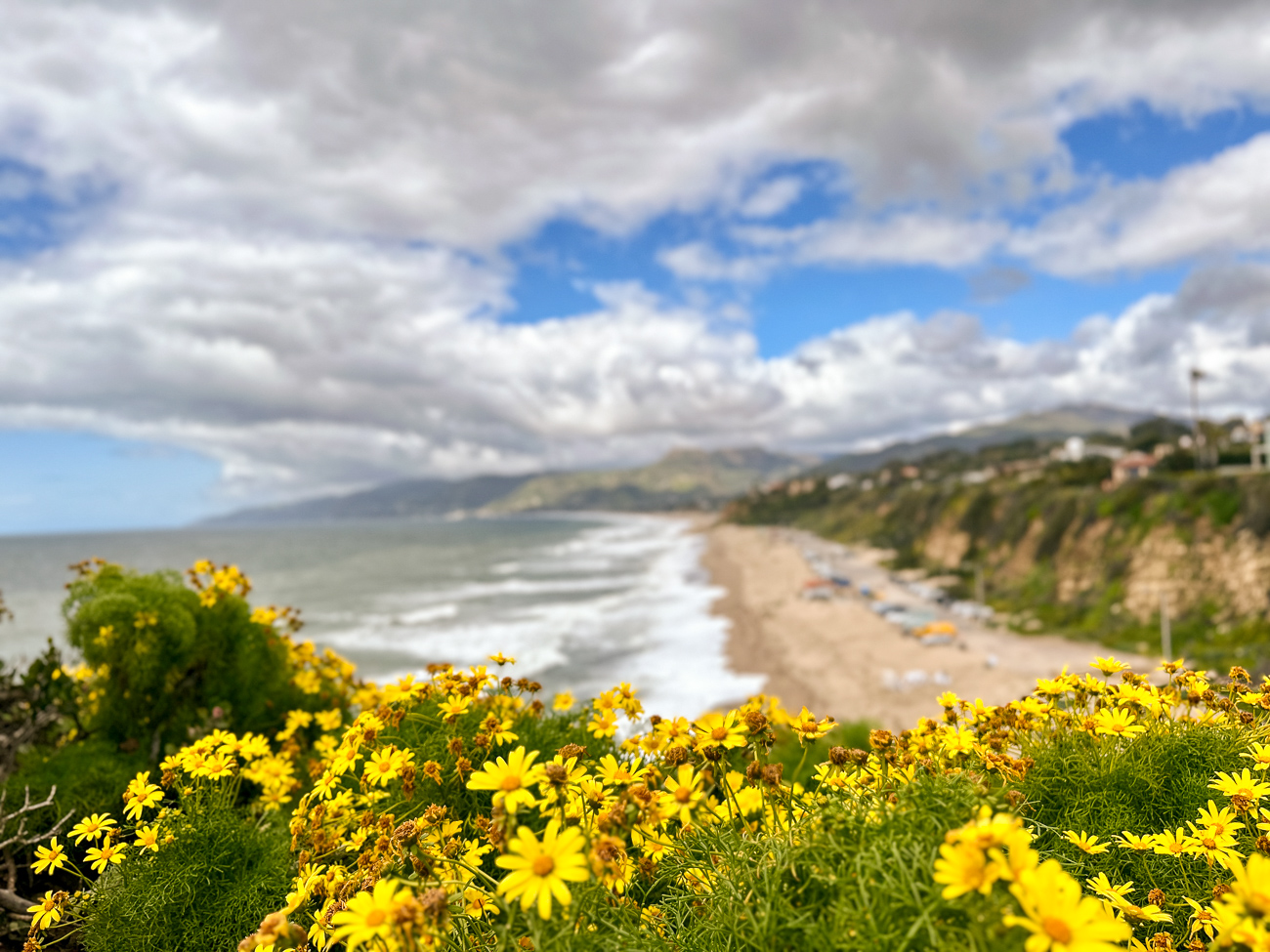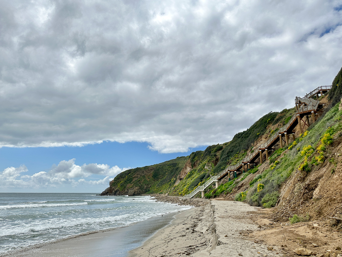 For our weekly hike, Amy and I drove to Malibu to walk along the Point Dome Natural Preserve. The trails starts on the beach and then it continues on top of the cliffs. A new stairway to the Point Dome Cove was just opened so we checked that out.