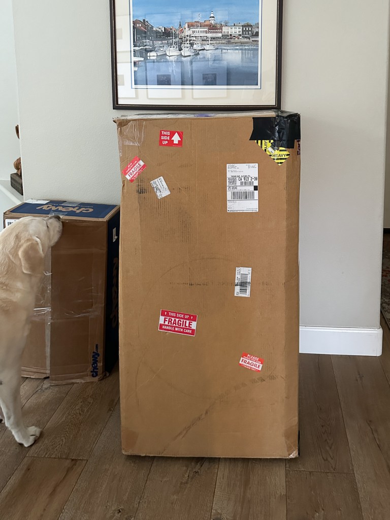 We received this HUUUUUGE box with “Fragile” and “Heavy” stickers all over it. What’s in this box?