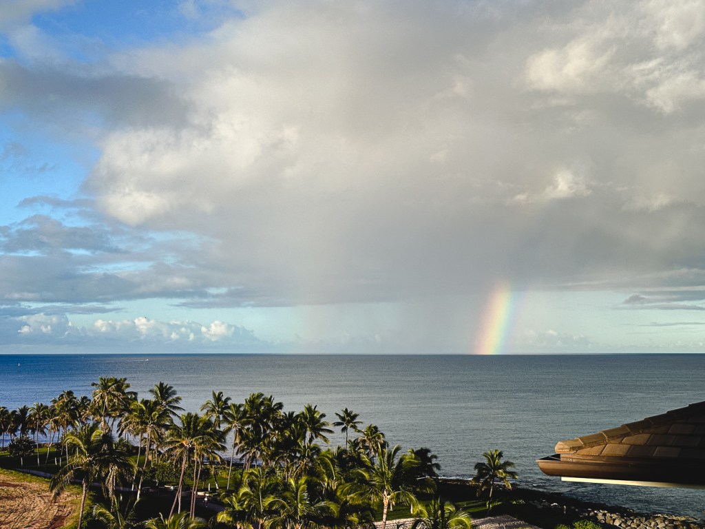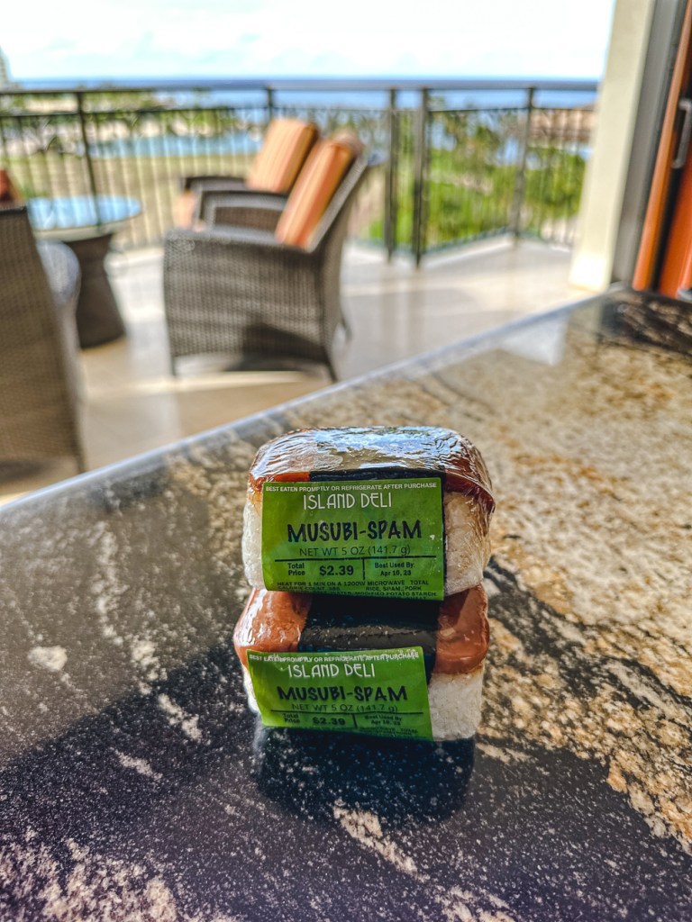 The next morning we woke up to a HUGE rainbow over the water. Unfortunately it was the only one of our trip. Don also got us our Hawaiian breakfast — Masubi! Spam, rice, teriyaki sauce all wrapped in nori. lt was our daily treat.