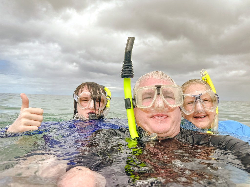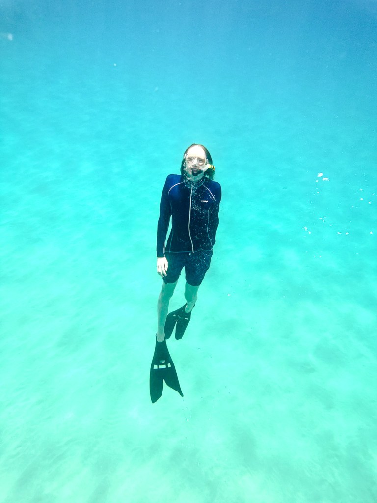 There is a huge pipe blowing warm water about 200 yards out that attracts lots of underwater life but it also creates quite a strong current. We were out pretty far and Don wanted swim another 100 yards to get the geocache. Quinn and I thought we might never see him again but thankfully he returned. He was able to touch the geocache but wasn’t able to get it and sign the log so unfortunately it’s not an official catch. But he survived and the snorkeling was spectacular!
