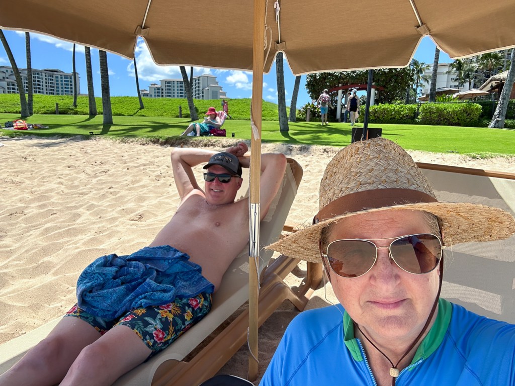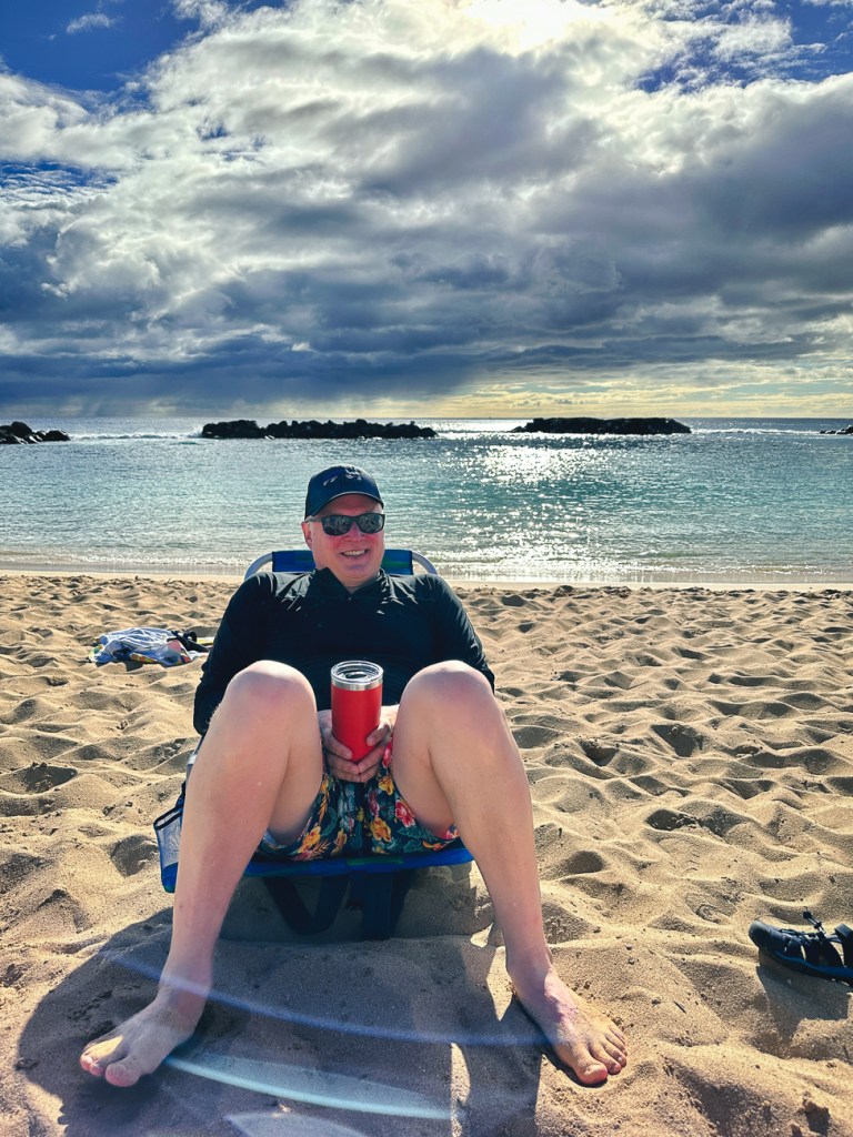 Friday — our last day! We rented a beach umbrella and paddle board for the day. The Conrath’s went off to Electric Beach and joined us later. Quinn got on the paddle-board and stayed out there for hours. He even tried to take a nap on it!