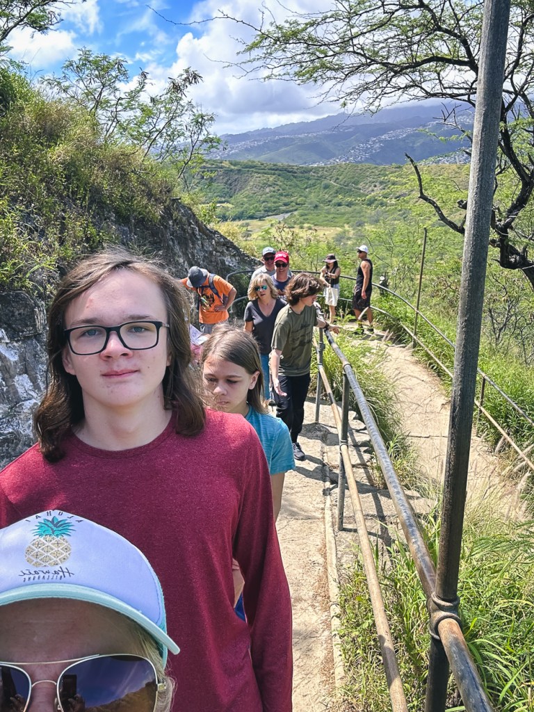 Tuesday morning we left the grandma’s at the condos and headed out to hike Diamond Head. It was about 2 miles roundtrip but straight up and straight down with lots and lots of people….but the view from the top made it worthwhile.