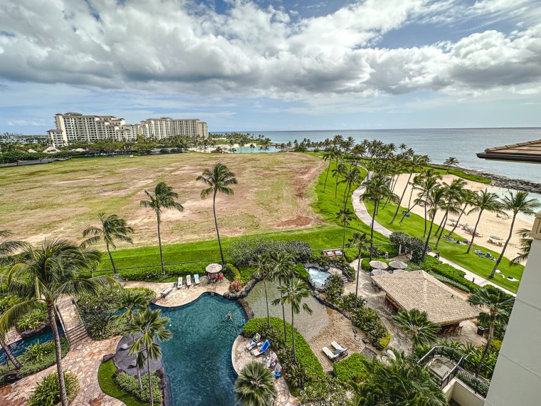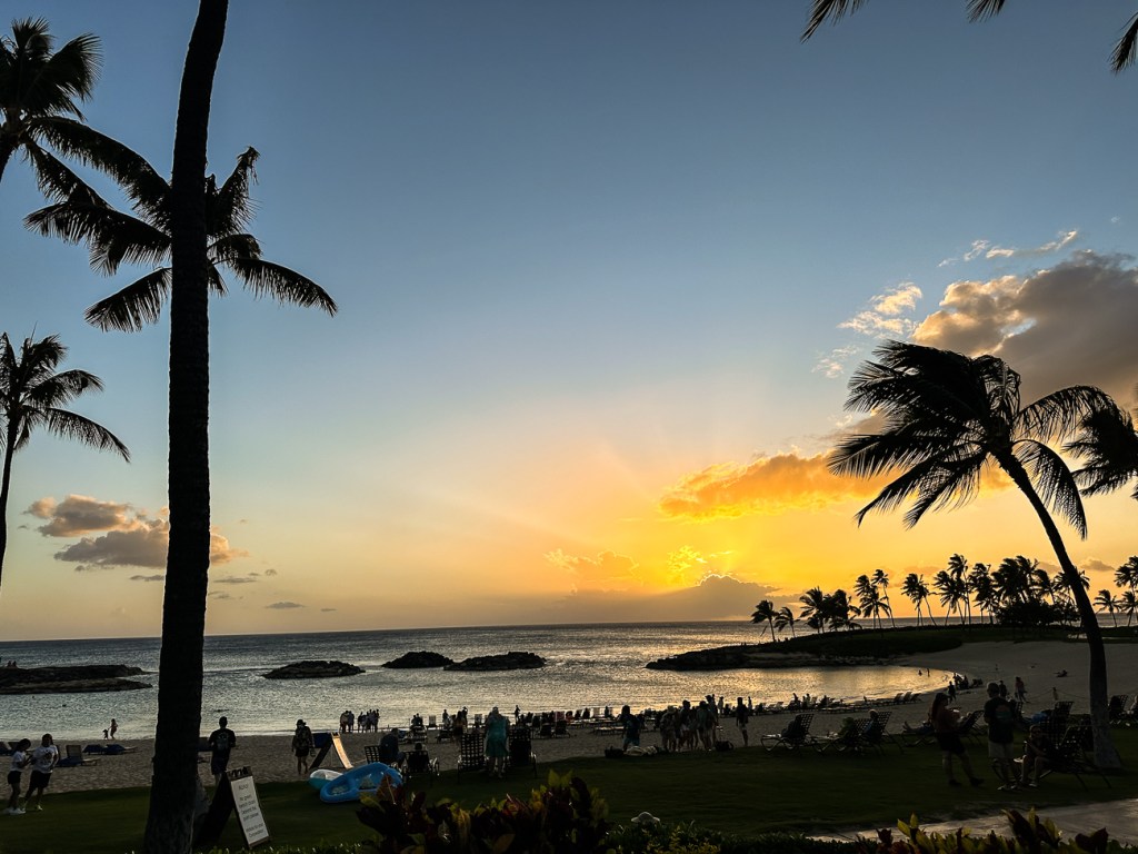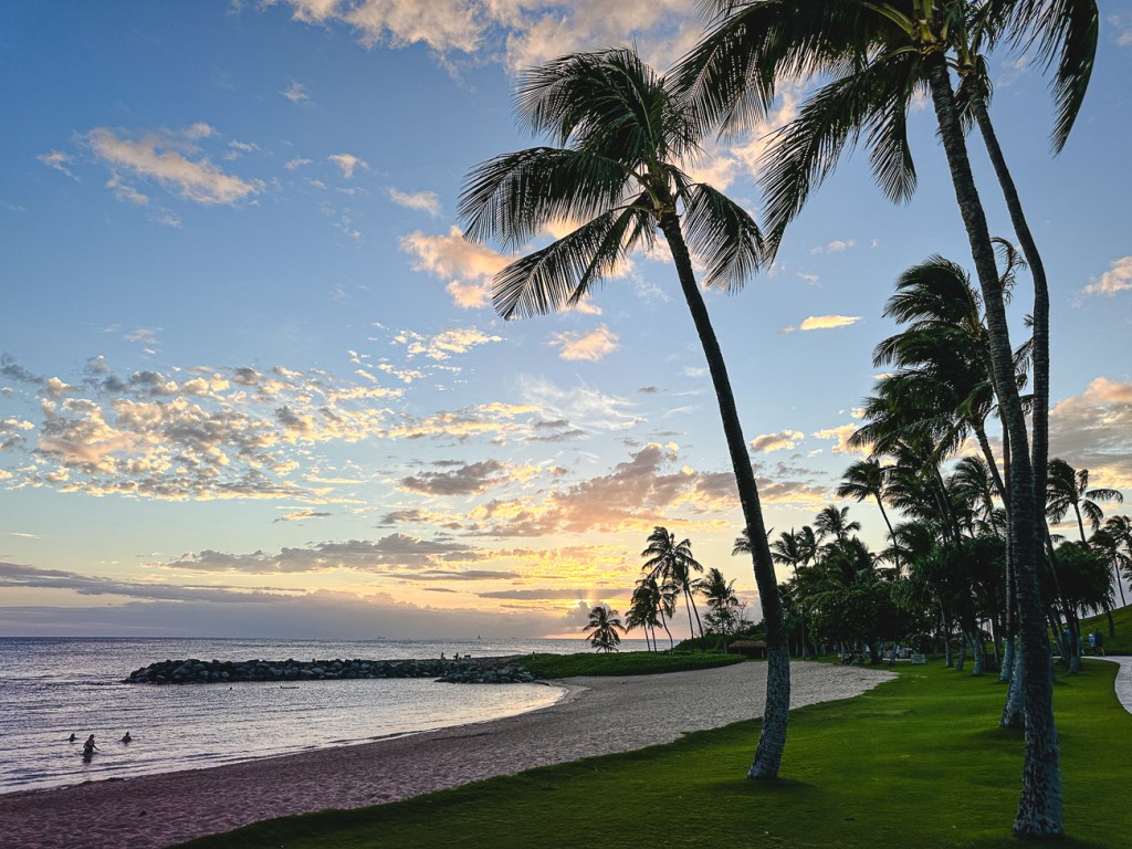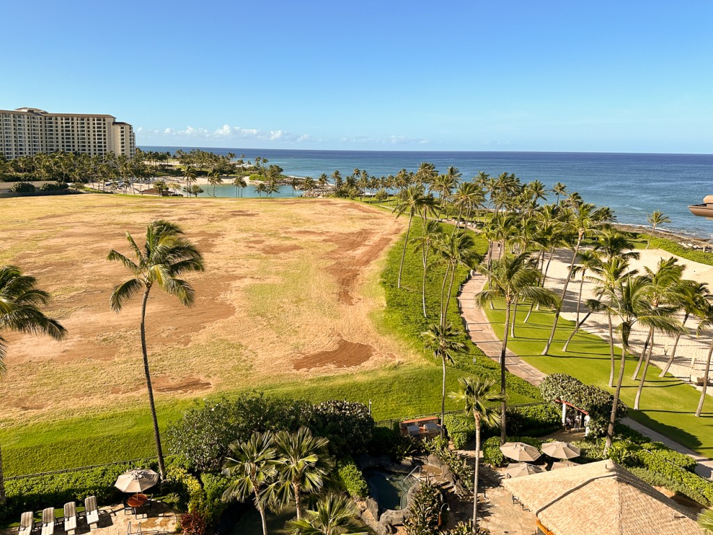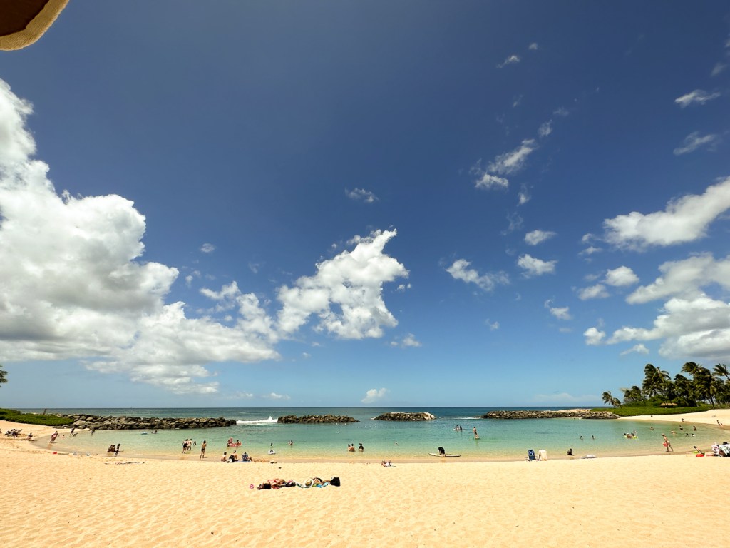 This google map gives a great view of the area where we stayed. There are 3 man made lagoons which made for really nice beach areas without a strong current. There is a long pathway that runs from one end to the other so we were able to access all of the hotels. We were at Beach Villas at Ko Olina in the middle lagoon.