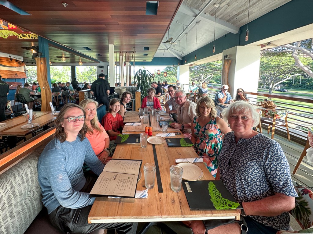 Friday night we had an early dinner at Monkeypod. Here’s the only picture of all 9 of us. Quinn loved his dinner and bought himself a t-shirt to remember it.