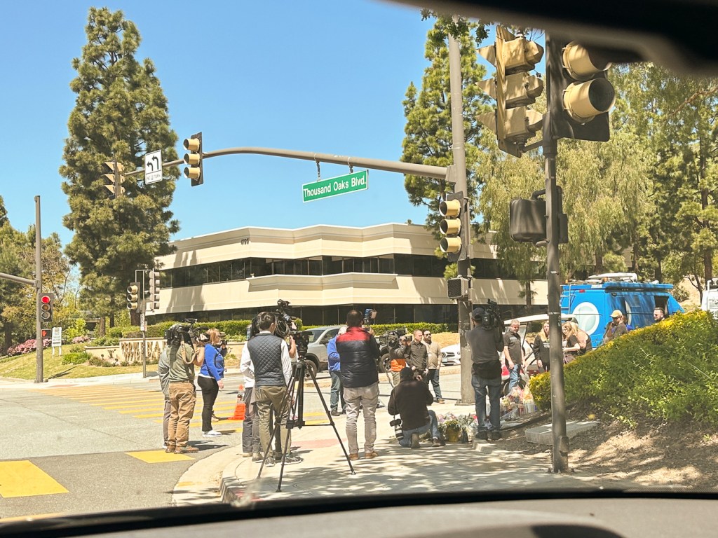 This was the scene when I picked Quinn up. No less than 10 news trucks.
