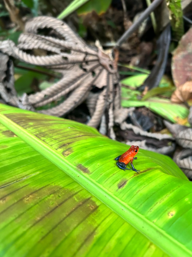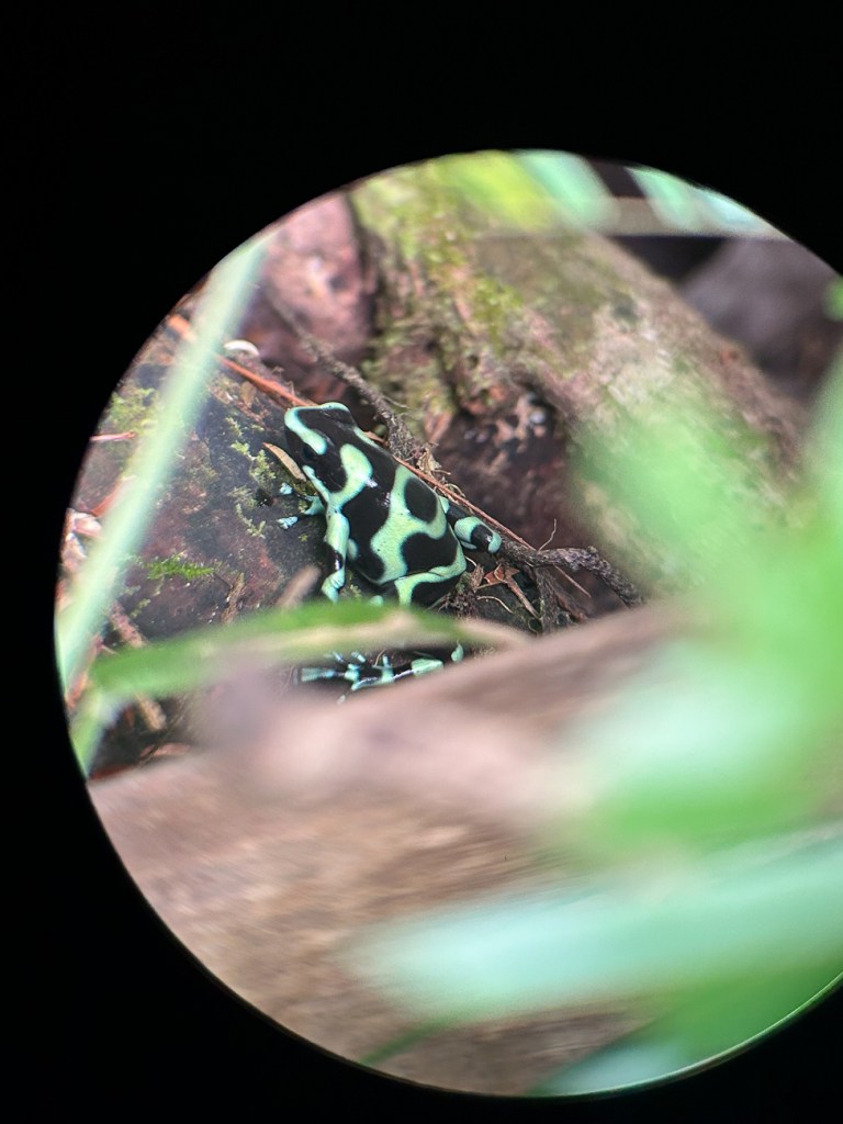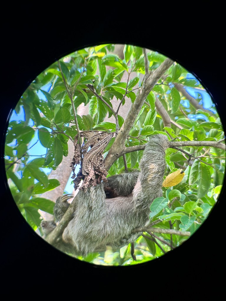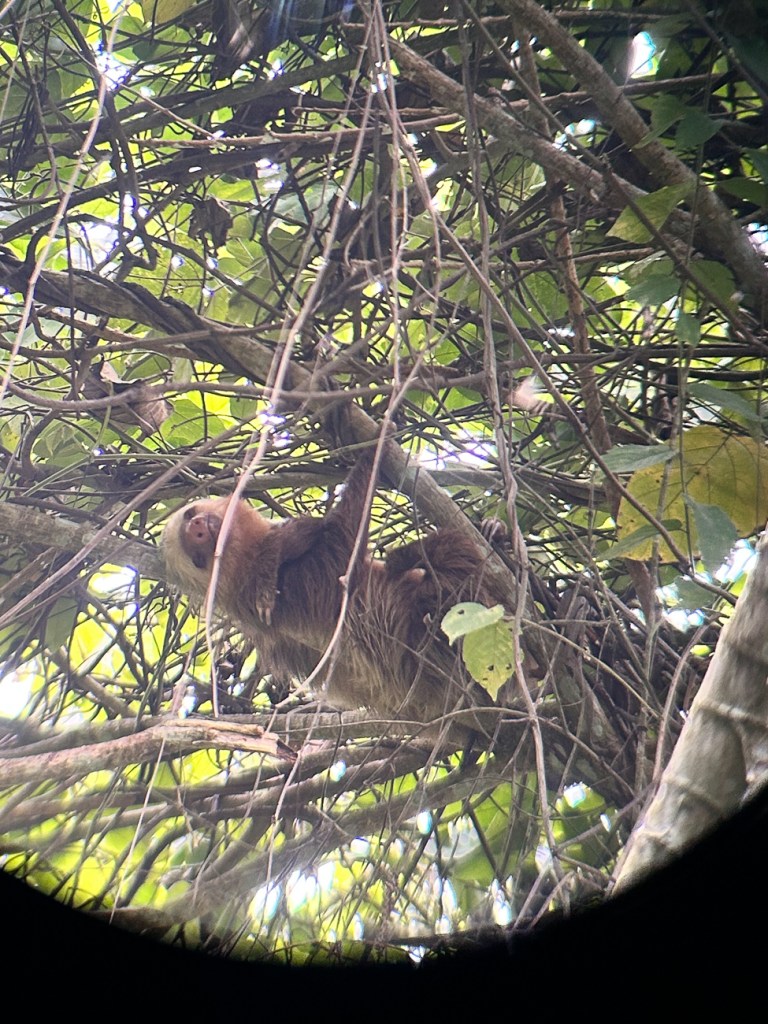 We had a relaxing morning around the resort and then went on a guided tour of a sloth preserve. Again, our guide was amazing and pointed out all the creatures we would never see. Many of these pictures are through her telescope view finder.