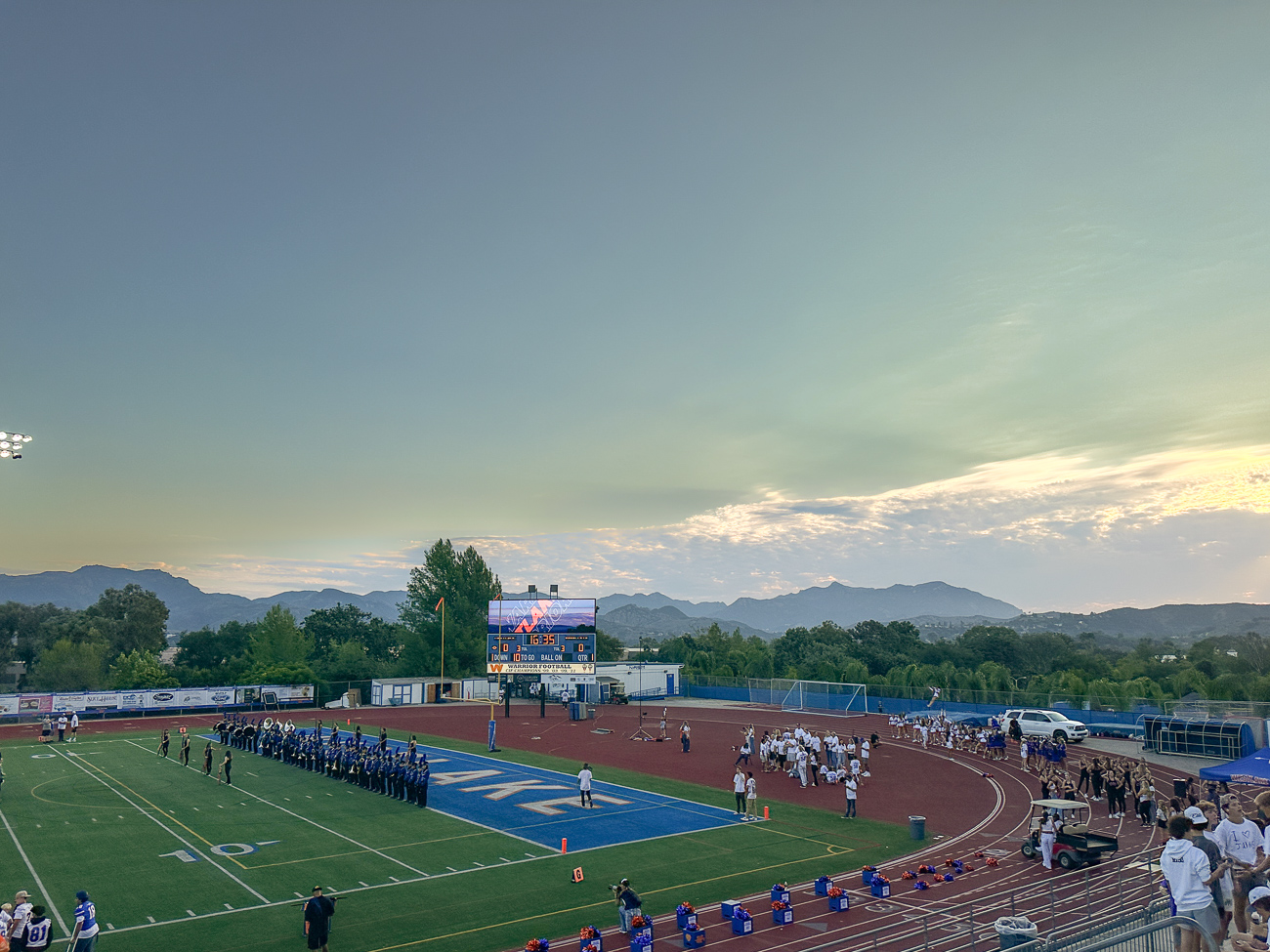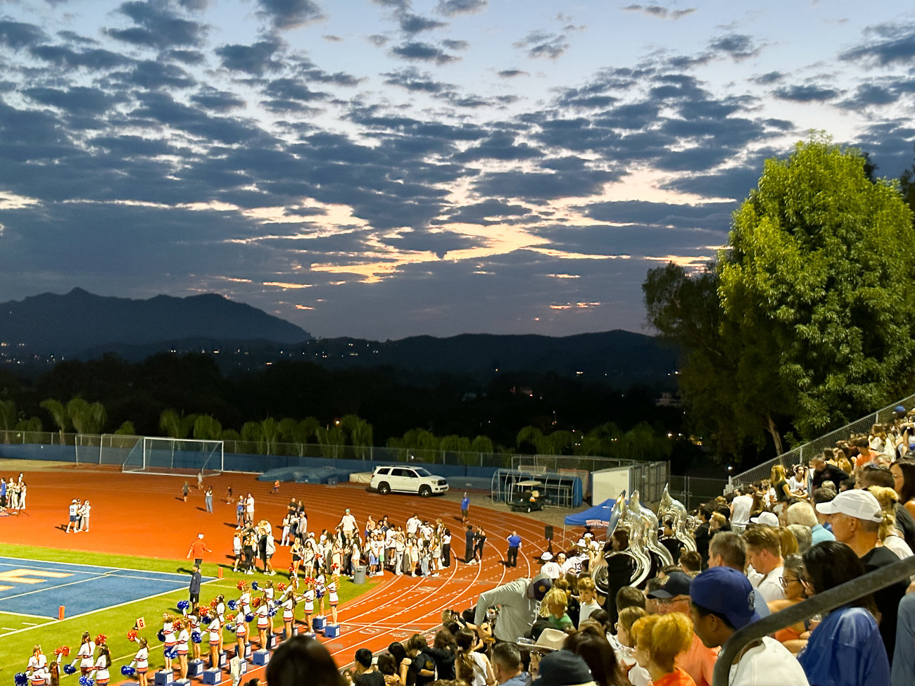 The school was going to have the kids sit on the track (for a 2nd week in a row) to make more room for paying students. But an email onslaught by Band Moms got our kids back in the stands playing with the crowd. It’s just so much more fun for them when they are playing in the stands.