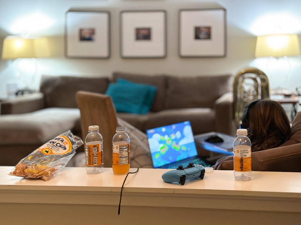 The guys didn’t feel like going to the Homecoming (HOCO) Dance this year so the teen had all the drinks and snacks at home from the comfort of his ‘battle station’.