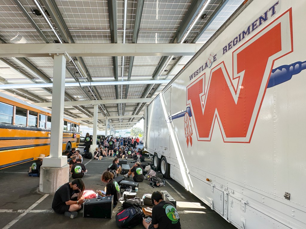 After they performed, they grabbed their lunch and retreated to the shade. The Booster Parents feel the Regiment 2 meals for each event. One before they get on the bus and one after they perform. The team has so much fun together and it’s great to be part of this community.